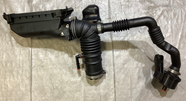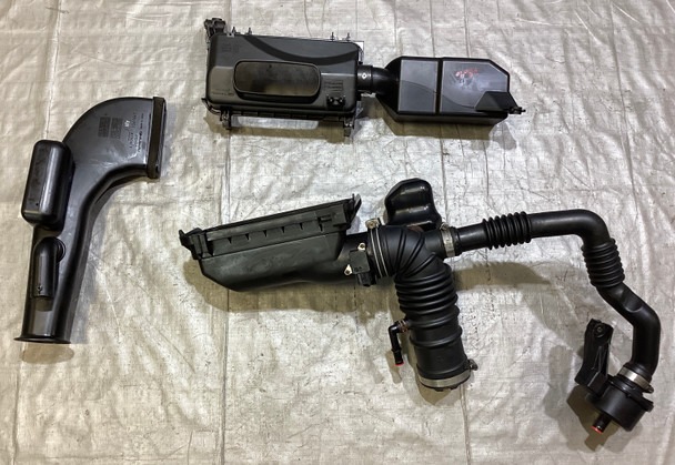 In fair used physical condition, one of the mounting arms for the airbox has multiple cracks throughout, and one mounting tab is cracked, as highlighted in the photos. It is recommended to reinforce these cracks and breaks prior to installation. All other mounting tabs are fully intact. There is some typical surface corrosion on some of the clamping brackets and hardware, as shown. You will need to reuse your existing hardware and components for installation.