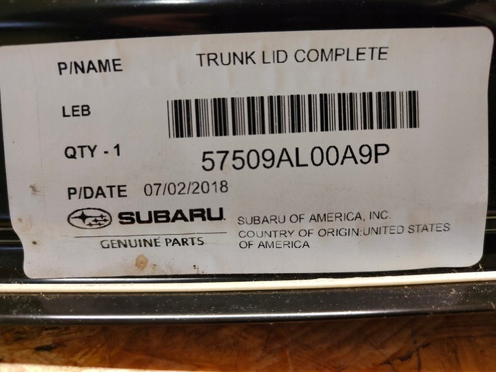 2016-2020 Subaru Impreza/ OEM Trunk Lid Panel